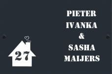 Je kunt nu oneindig blijven combineren met verschillende bordjes, indeling, lettertypen, afbeeldingen, kleuren, bevestigingspunten en zelfs échte RVS cijfers.