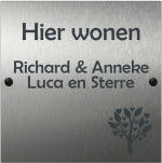 Je kunt nu oneindig blijven combineren met verschillende bordjes, indeling, lettertypen, afbeeldingen, kleuren, bevestigingspunten en zelfs échte RVS cijfers.