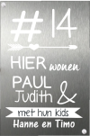 Je kunt nu oneindig blijven combineren met verschillende bordjes, indeling, lettertypen, afbeeldingen, kleuren, bevestigingspunten en zelfs échte RVS cijfers.