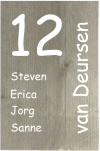 Dit houten bordje is 3cm dik en zal, naar mate hij langer buiten hangt, een mooie, grijze, geleefde uitstraling krijgen.